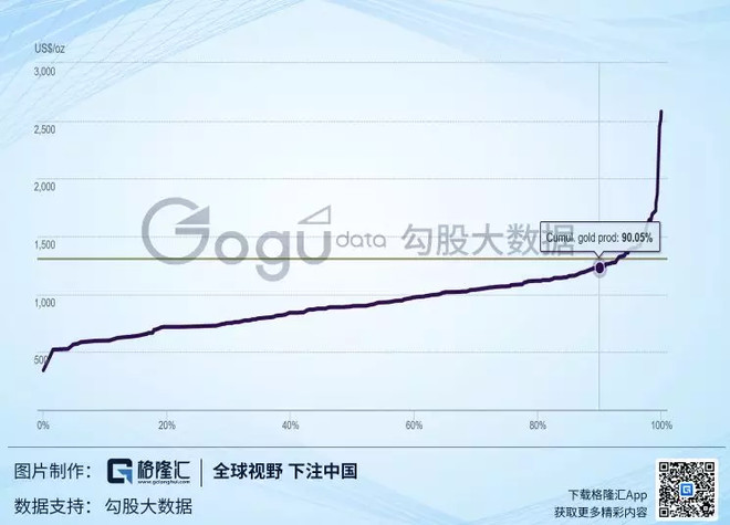从WGC统计的all-in sustaining cost来看(可以理解为一种接近total cost的指标),金矿矿商的50分位成本(即中位数)大约为900美元一盎司,90分位成本在1300多美元一盎司。