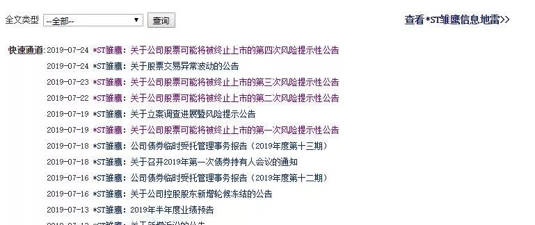 2018年6月14日,随着*ST雏鹰的财务问题遭到外界质疑,与其合作80%以上的金融机构宣布贷款提前到期。此后,深交所关注函接踵而至,*ST雏鹰债务危机开始爆发。