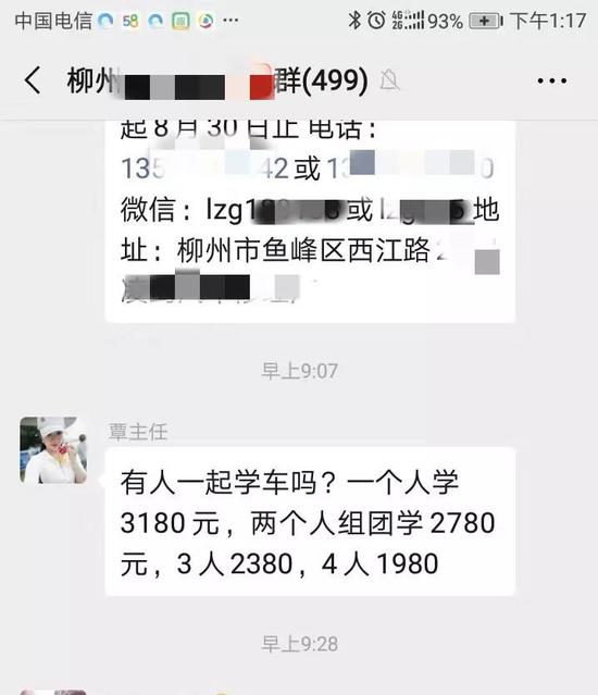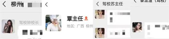 这些“驾校主任”都有一个共同特点,他们都是美女头像,并且以低价学车为由头,在柳州的各个群里“招生”。