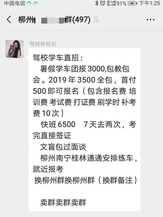 原标题:柳州微信群现美女驾校主任:六千五买证,145个训练场通用