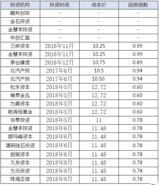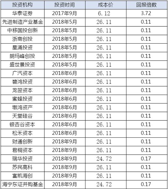 注:以上投资方的统计并不完整,未能计入的包括但不限于:1、通过新三板二级市场投资的;2、部分外币基金;3、部分未备案的私募股权基金;4、部分投资周期超过三年(即招股书报告期)的机构。