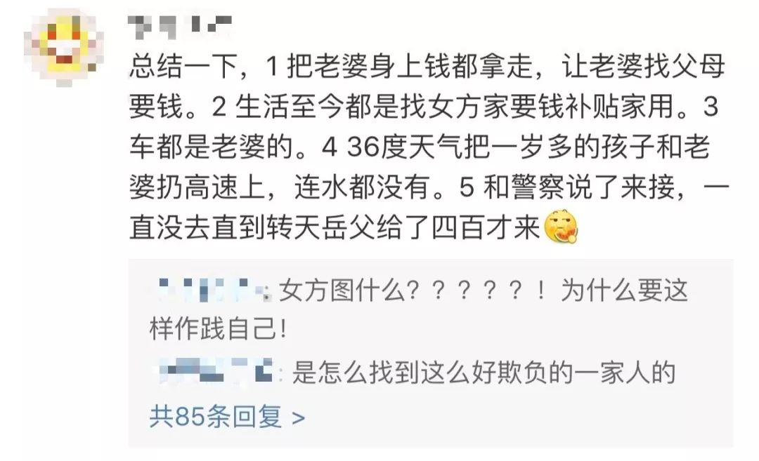 原标题:男子将妻儿扔高速,次日收到岳父400元车费才回去接人。。。