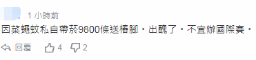 还有人结合台“国安局”官员22日被曝走私9800条香烟的丑闻,讽刺称放出滑冰赛被取消的消息“想把(走)私烟新闻盖掉吗”。还有人说,因为蔡英文私自带9800条烟送人出丑,所以不宜办国际赛。