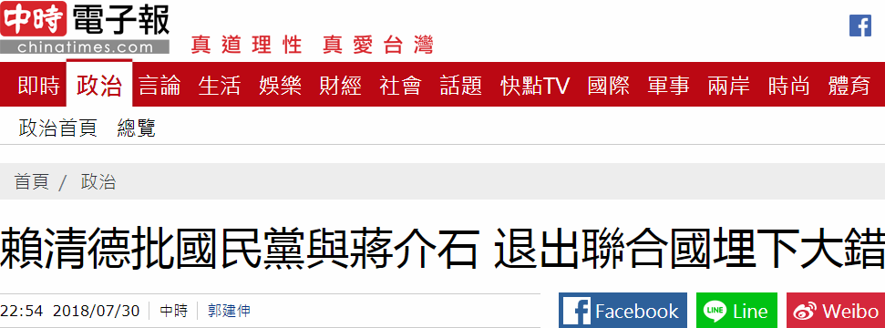 《中国时报》当时评论称赖清德言论荒谬,所谓“蒋介石主动退出联合国”是“独派”制造已久的谣言。文章批评,赖清德公然扭曲事实,试图将东亚青运的责任牵连到蒋介石,只能显示“独派”已经“没步”,“倒退回凝聚支持者的困境”。