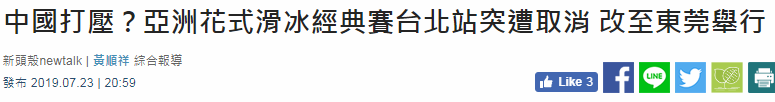 原标题:亚洲滑冰经典赛台北站被曝取消,网友讽:民进党再执政台湾没救