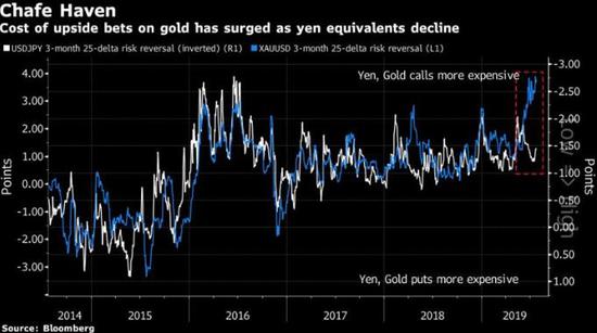 包括Alessio Rizzi在内的高盛策略师周一在一份报告中指出,黄金价格的波动升高,使得黄金这个传统避风港的看涨期权比日元的看涨期权更加昂贵。
