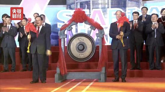 在今天的科创板开市仪式上,上海市、证监会和上交所的领导分别致辞,首批25家上市公司代表和上交所签署了上市协议,重要领导和企业代表一起为科创板鸣锣开市。