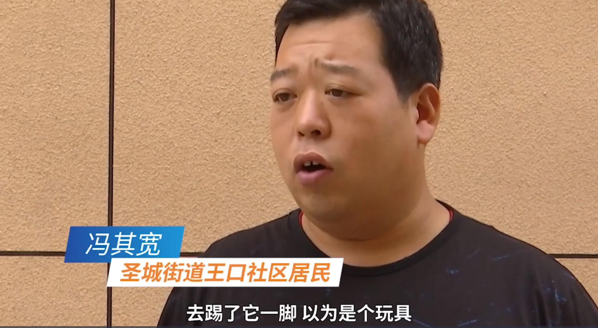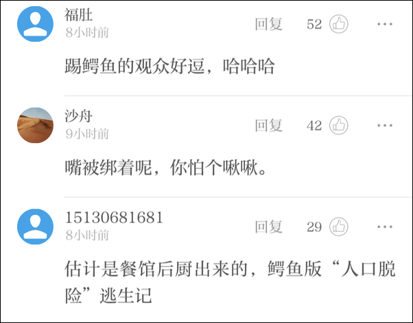 “起初不以为它是一条真鳄鱼,去踢了它一脚,以为是个玩具,但是第一脚踢着很重,它没有动,踢第二脚的时候,它突然起来了动了,我就知道它是个真鳄鱼,后来我就报了警。”圣城街道王口社区居民冯其宽表示。