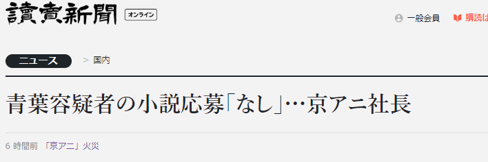 日本《读卖新闻》20日报道称,京都动画公司除了制作动画以外,也公开征集小说,其中获奖的作品可以在该公司的“KA Esuma文库”出版成书,或制作成动画。但八田英明表示,青叶真司并没有向该公司投过稿。
