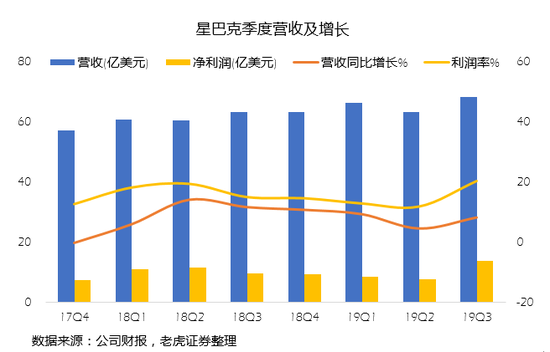 全球最大的咖啡连锁店星巴克于7月25日盘后公布2019年第三财季的财报,公司营收68.2亿美元,同比增长8.1%,高于市场预期的66.7亿美元,GAAP每股盈利1.12美元,高于预期0.42美元。