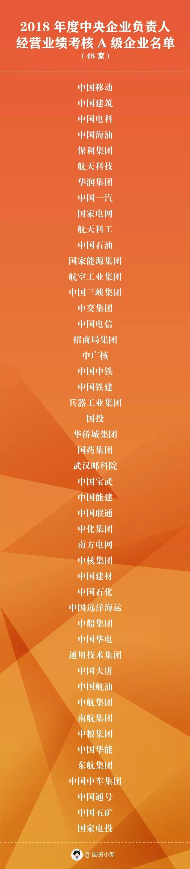 2018年度考核结果为A级的企业48家——
