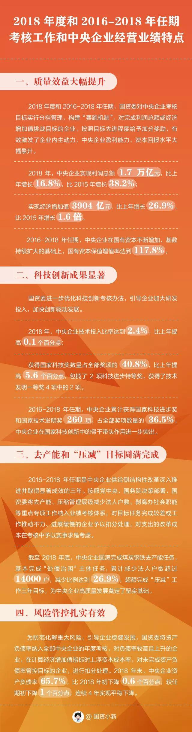 最后,一起回顾2018年度和2016-2018年任期考核工作和中央企业经营业绩特点——