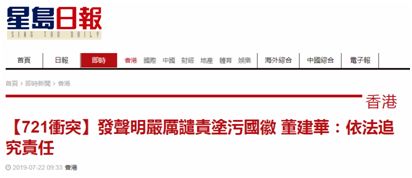 另据《星岛日报》“大公文汇全媒体”等多家港媒报道,董建华也在22日早上发表声明,强烈谴责示威者围堵及冲击中央驻港机构、涂污国徽的行为,称这种行为令人感到非常痛心和愤怒。