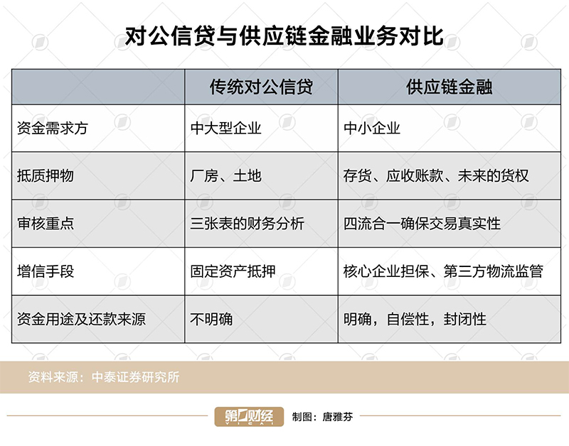 这是因为供应链金融可以实现多方共赢,它可以通过银行表外业务完成,不占信贷额度;可以有效盘活核心企业在银行的存量授信资源;可以批量导入大量中小微客户,完成监管层对银行小微业务的考核;可以有效提高银行的资产定价水平;同时增加银行中间业务收入。