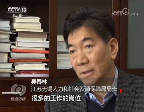 无锡人力资源和社会保障局局长 吴春林:所以我们要研究这些技能人才,他的收入要跟他的劳动成果要相匹配,改善他的一些(生存)环境。我们现在讲实体经济需要大量的技能人才,国家需要大国工匠,现在培养我们的工匠,也是我们人社部门最关注的一个问题,要构建终生培养的职业教育的体系。”
