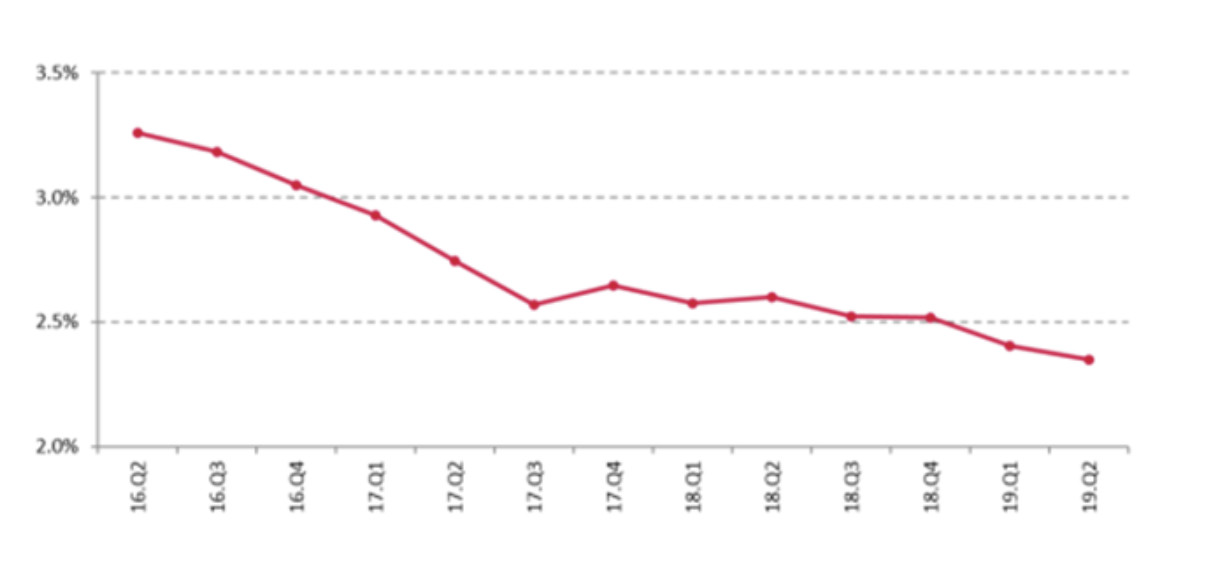 报告显示,二季度50城房屋租金收益率(房屋的年租金收入与房屋价值的比值)环比下降3%、住宅综合收益率(过去一年房价涨幅加过去一年租金收益率)环比下降了32%,已连续5个季度下降。