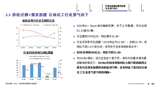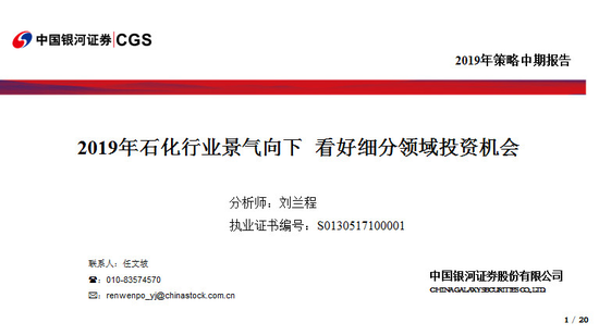 原标题:【银河石化】中期策略:2019年石化行业景气向下 看好细分领域投资机会