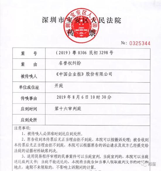 2019年3月中旬,我司收到深圳市宝安区人民法院(以下简称“宝安法院”寄来《民事起诉状》《应诉通知书》《传票》及案件其他证据材料。《应诉通知书》告知,顺丰速运与我司的名誉权纠纷案件,宝安法院于2019年1月28日立案,案号为(2019)粤0306民初3298号,《传票》显示开庭时间为2019年4月9日16时30分。