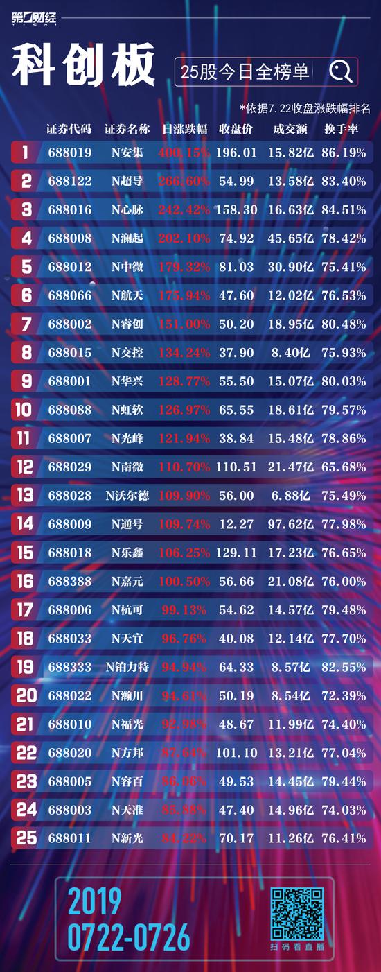 科创板首秀盘点:25家公司平均涨幅约140%,11股收阴线